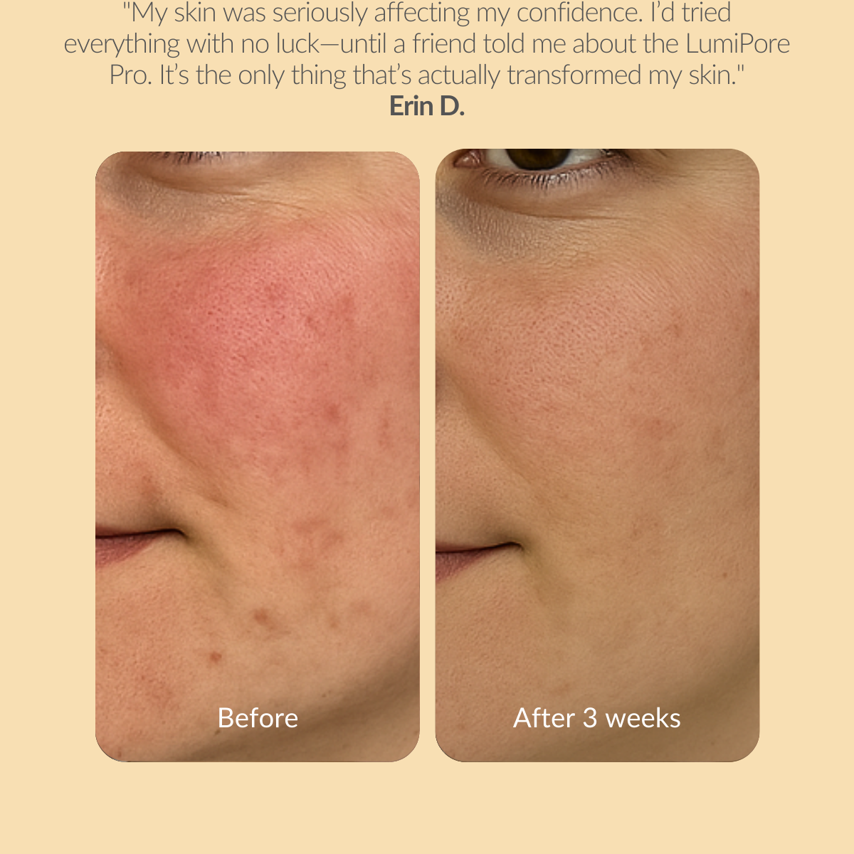 I can't beleive the results I have seen in only 1 week! The LumiPore Pro works wonders and makes my skin feel so plump!