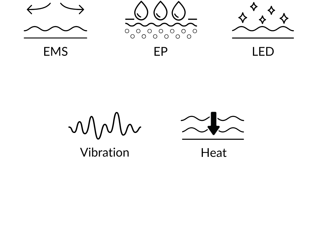 EMS (electrical muscle stimulation) gently works your facial muscles, while EP (electroporation) briefly opens tiny pathways in the skin. Together, they help your products absorb deeper, boost natural collagen and energy in the skin, improve firmness, and reduce sagging - leaving your complexion smoother, stronger, and more refreshed.